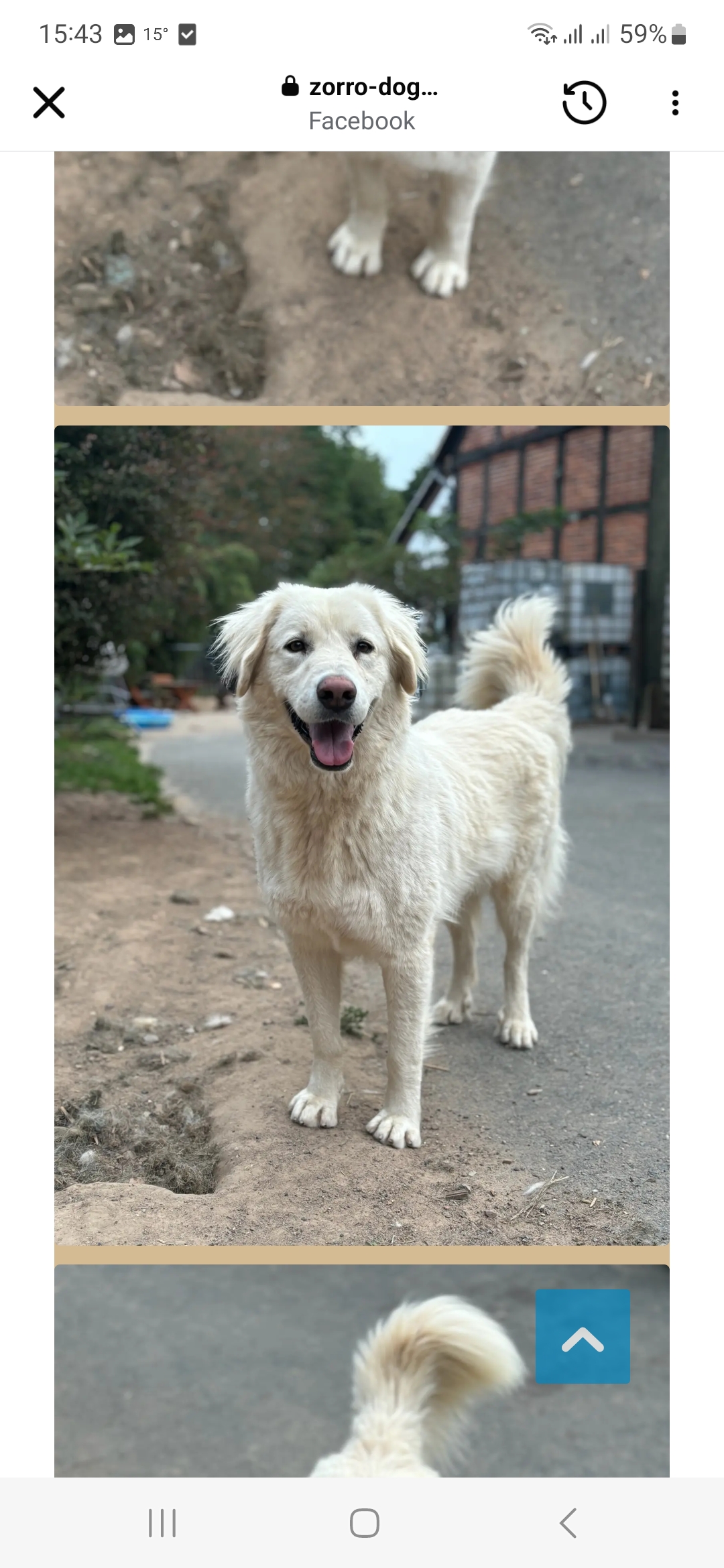 Einige Merkmale wie die kürzere Schnauze, der robuste Körperbau sowie gewisse Gesichtszüge passen gut zum Labrador Retriever. Auch die etwas kräftiger wirkenden Pfoten deuten auf eine Retrievereinmischung hin.