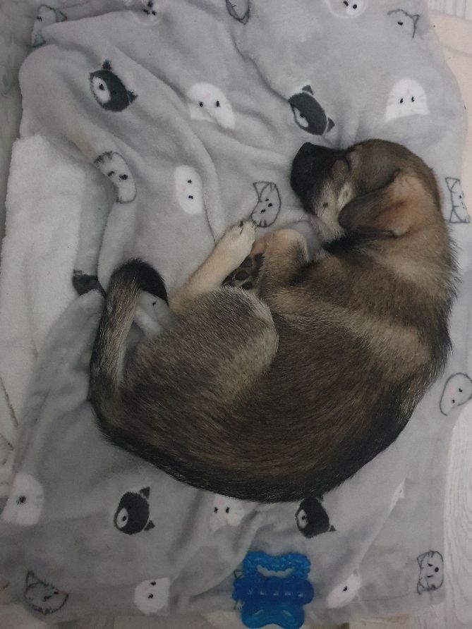 Der leichte graue Farbton im Fell sowie die kompakte Körperform deuten auf eine Beteiligung von Husky-Genen hin. Das dichte Fell sowie die Form der Rute (leicht gekrümmt) sind ebenfalls husky-typische Merkmale.