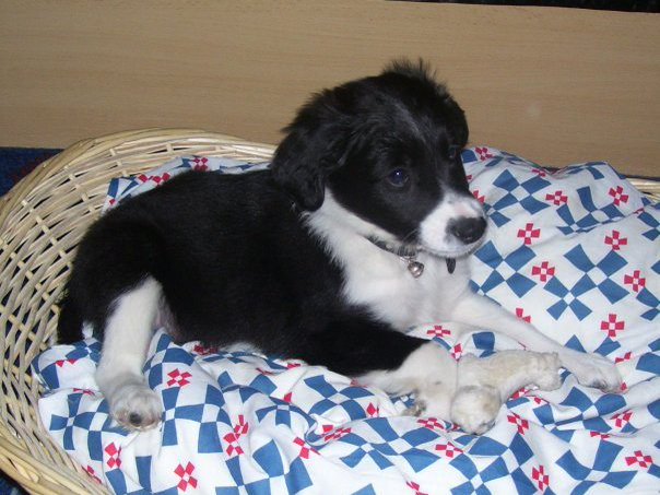 Der weiße Brustbereich, die weiße Gesichtsmaske und die leicht stämmige Beinmuskulatur erinnern etwas an einen jungen Berner Sennenhund, auch wenn der Anteil eher gering ist.