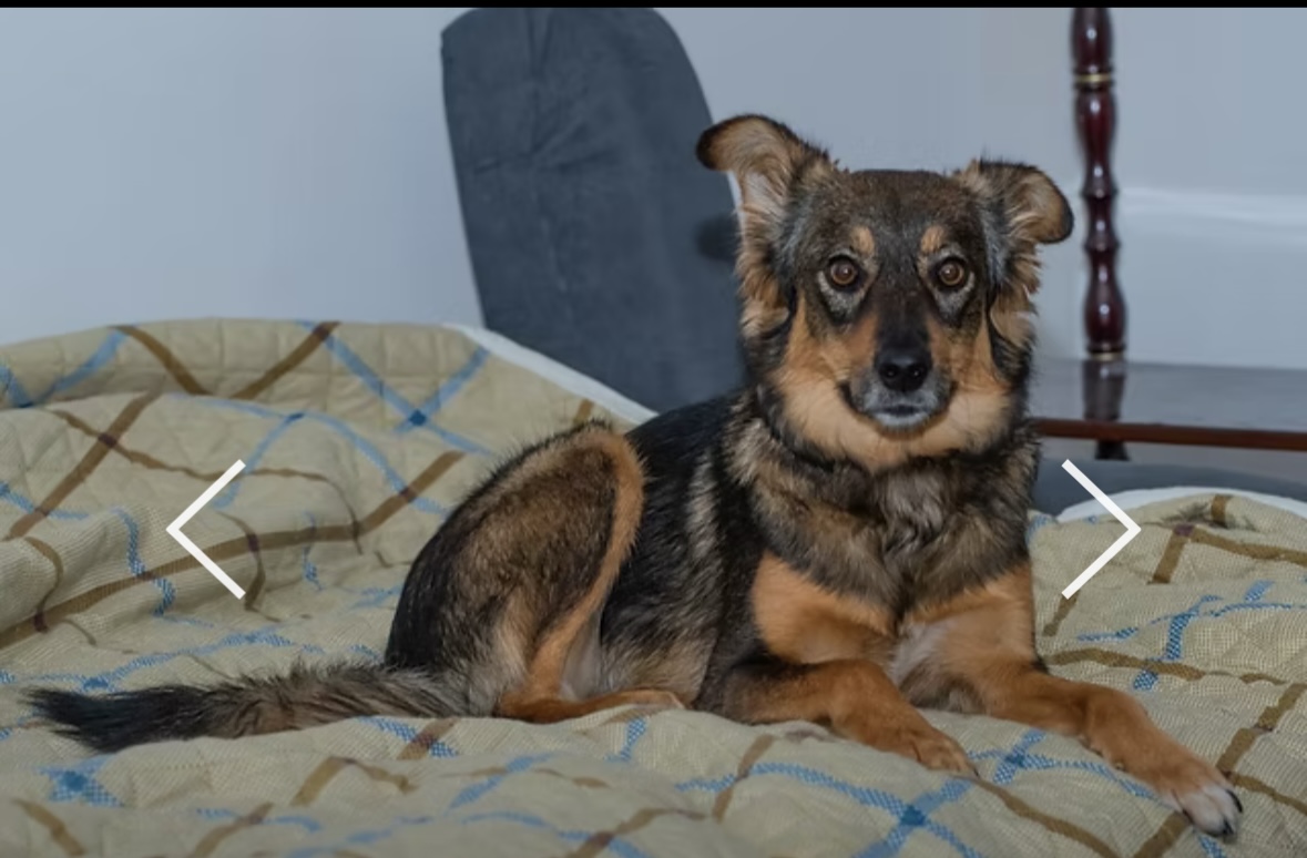 Das Fellmuster (vor allem der schwarze Sattel und die braune Grundfarbe), die Körperform sowie bestimmte Gesichtszüge wie der markante Ausdruck und die aufrechte Haltung deuten stark auf einen hohen Anteil Deutscher Schäferhund hin.