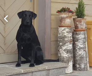 Der Hund hat den typischen kompakten, muskulösen Körperbau eines Labradors, sowie den breiten Kopf, hängende Ohren und das kurze, glänzende schwarze Fell, das häufig bei Labradors vorkommt.