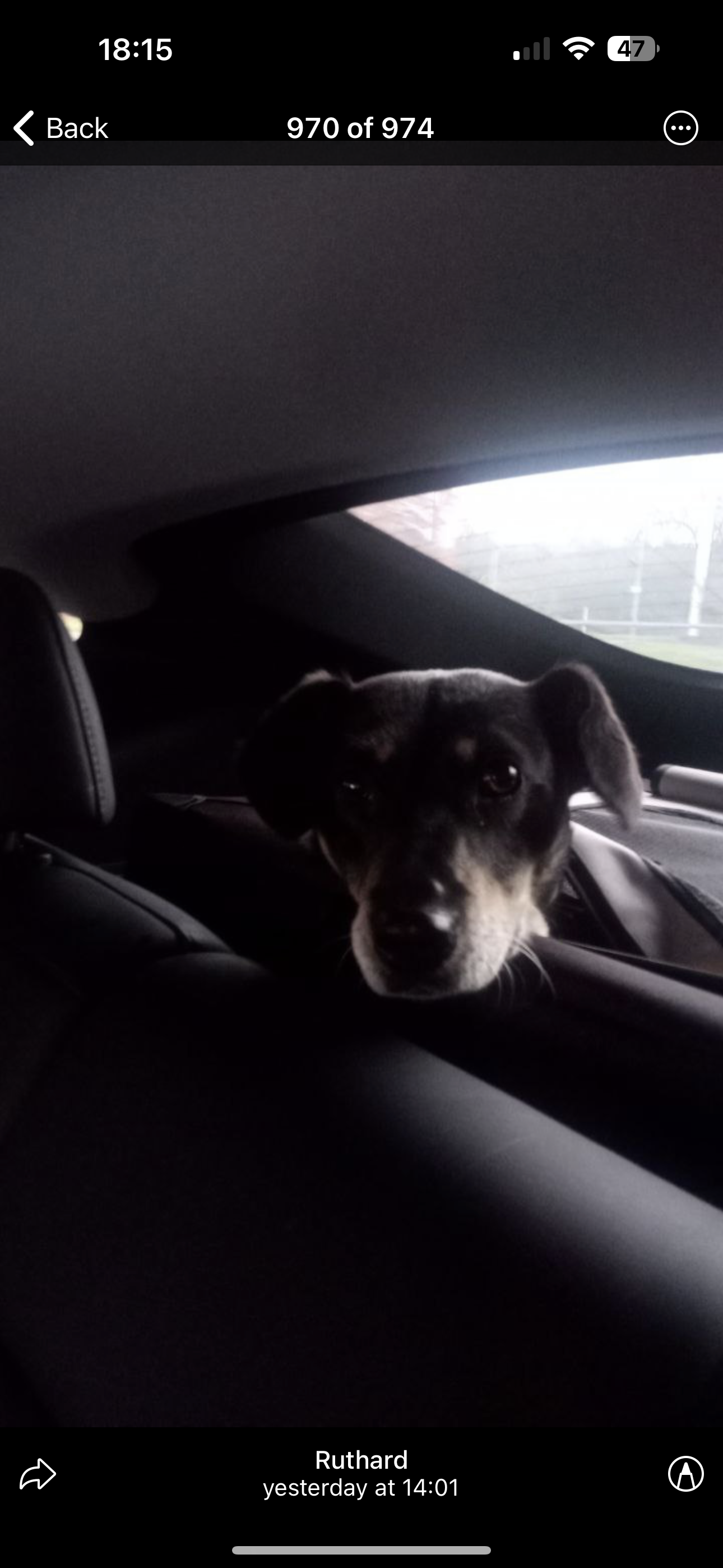 Der Kopf wirkt etwas schmaler und die Schnauzenform ist spitzer als bei einem reinen Labrador oder Schäferhund. Dies spricht für den Einfluss eines Terriers, möglicherweise eines Deutschen Jagdterriers, auch aufgrund der kompakten Größe und der agilen Erscheinung des Hundes.